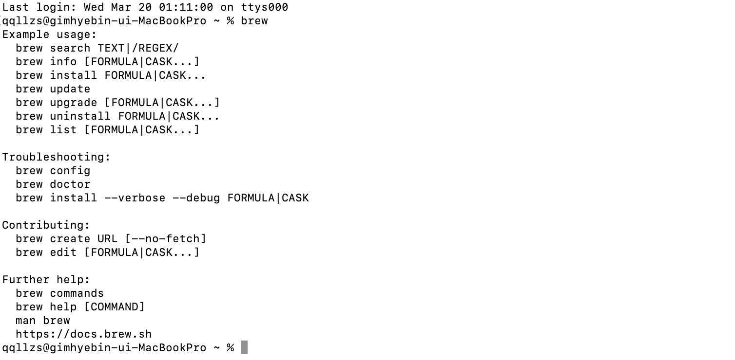 터미널을 다시 껐다가 켠 뒤, brew를 명령어에 다시 입력! (조마조마)