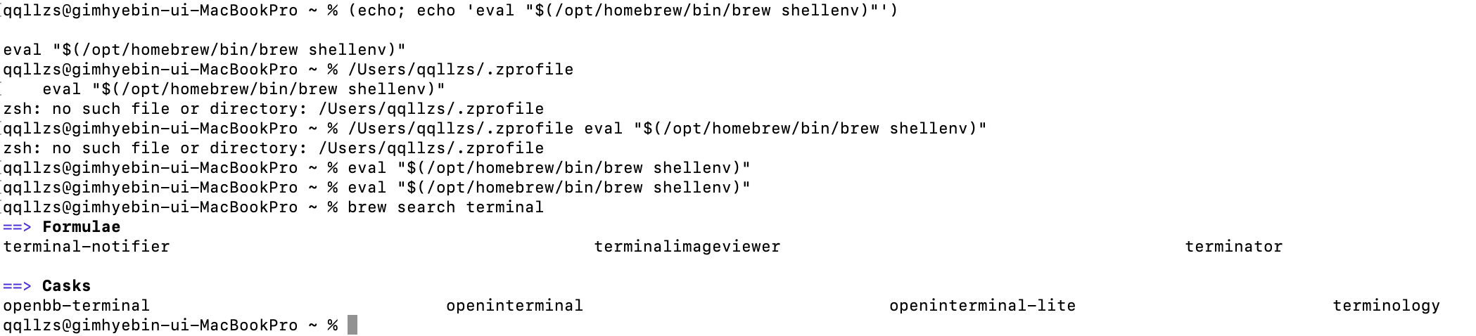 터미널 재시작하고, brew를 찾을 수 없다는.. 결과를 마주했다.