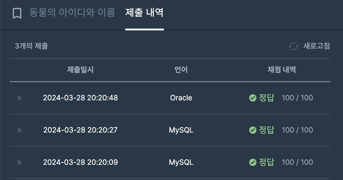 SQL을 실행하면 다음과 같이 출력되어야 합니다.
