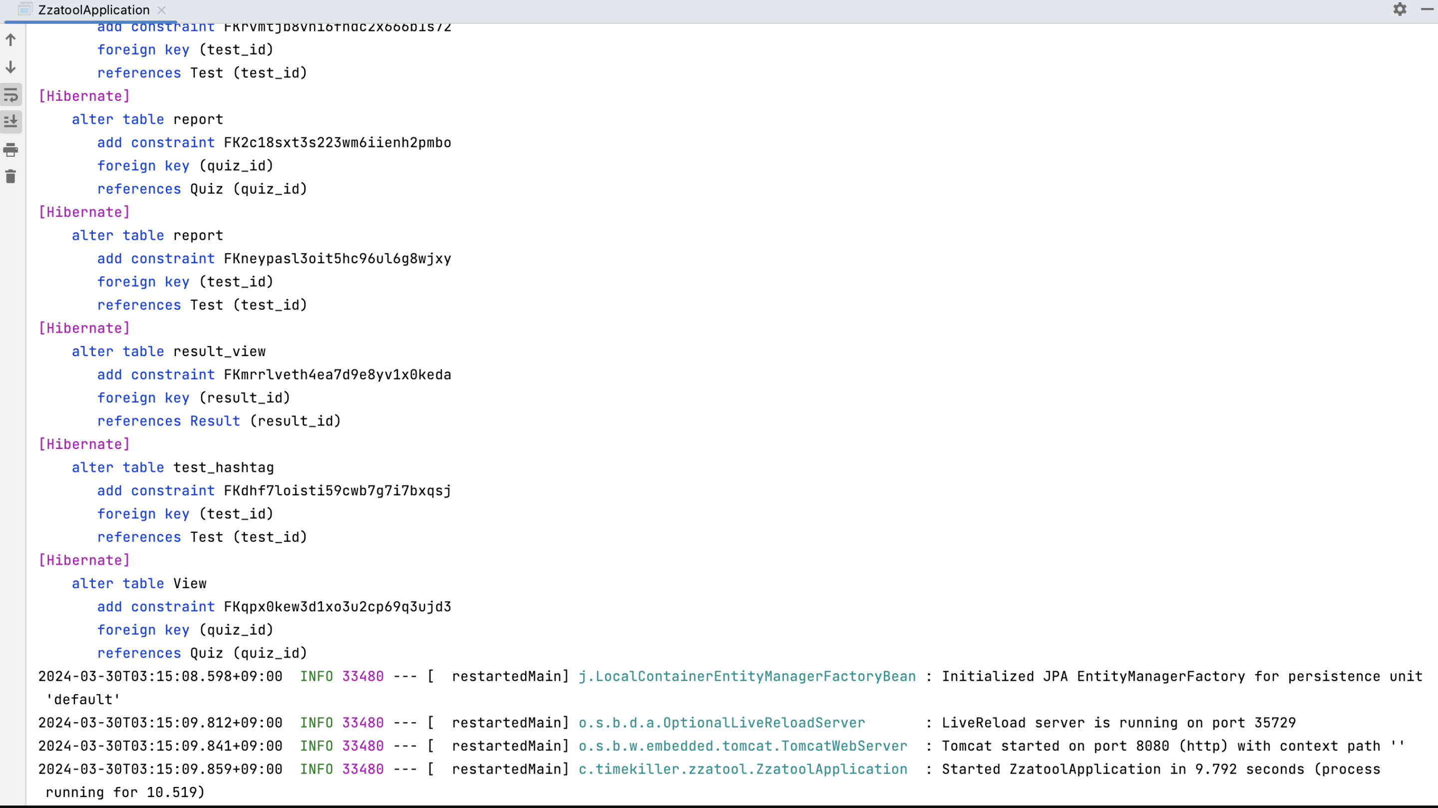 다음에 유저를 timekiller(현재 우리의 팀명..ㅎ) 로, 데이터베이스 이름을 zzatool로 재생성해야겠다.